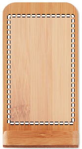 Double coil wireless charger for 1 device in bamboo casing and with stand functionality. Place smartphone on it to begin charging. Output: DC5V/1A (15W).