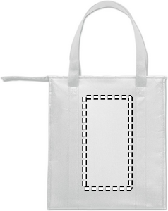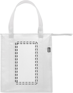 Cooler bag in RPET non-woven 80gr/m². Isolation material: aluminium foil. Capacity 25L. Main compartment with zipper on top.