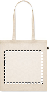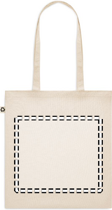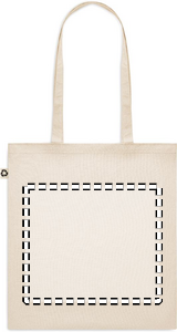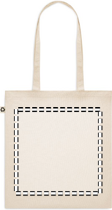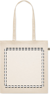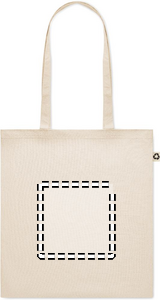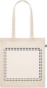 Recycled post-consumer cotton shopping bag (65% recycled cotton, 35% regular cotton) with long handles. 140 gr/m². Take this sustainable shopping bag with you for your daily grocery shopping or use it for events. The long handles make it convenient to carry this tote bag over your shoulder.